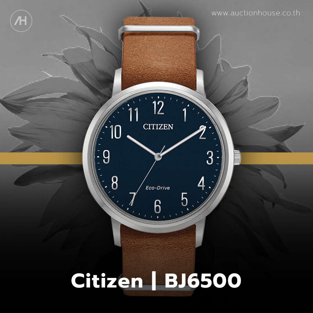 Citizen BJ6500 คือนาฬิกาที่ดูเหมือนธรรมดาแต่ไม่ธรรมดา ด้วยดีไซน์โมเดิร์นล้ำสมัยที่ไม่ว่าจะใส่กับชุดอะไรก็ดูดีไปหมด หน้าปัดสีกรมท่าและเข็มเดินเวลาสีเงินตั้งอยู่บนเคส Stainless Steel ขนาดเส้นผ่านศูนย์กลาง 40 มิลลิเมตร มาพร้อมกับสายหนัง NATO ที่มีความบางกว้างเพียง 20 มิลลิเมตร สามารถกันน้ำได้ลึกถึง 50 เมตร และจุดเด่นที่สุดสำหรับ BJ6500 คือ Caliber รุ่น ECO-Drive รหัส E031 ควบคุมเข็มนาฬิกาทั้งสามอย่างแม่นยำด้วยระบบ Quartz ที่ไม่มีวันตาย เพราะ Movement ตัวนี้ขับเคลื่อนด้วยพลังงาน “แสง” ที่เป็นแสงอะไรก็ได้ทั้งนั้น จะเป็นแสงอาทิตย์จัดๆ แสงอาทิตย์ในวันที่เมฆหนา หรือแสงไฟจากหลอดไฟก็ใช้ได้ทั้งหมด หรือจะไม่มีแสงอะไรเลยก็มีพลังงานสำรองที่ยืดชีวิตนาฬิกาเรือนนี้ได้นานถึง 6 เดือน! ราคามือหนึ่งเริ่มต้นที่ 6,300 บาท