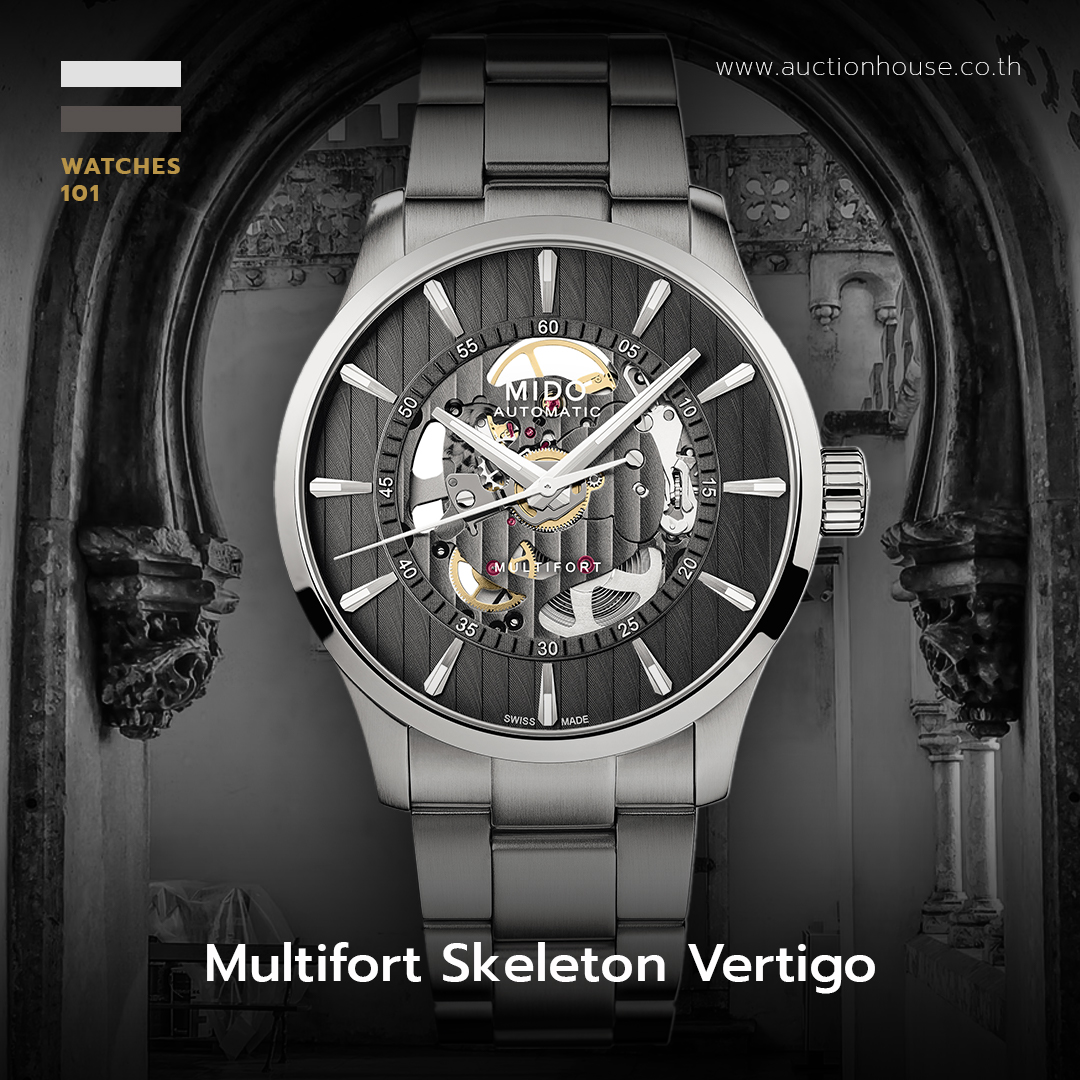 เริ่มจาก “มัลติฟอร์ต สเกเลตัน เวอร์ติโก้” (Multifort Skeleton Vertigo) เรือนเวลาหรูจากตระกูล มัลติฟอร์ต (Multifort) ที่ถูกดีไซน์ขึ้นใหม่ด้วยหน้าปัดที่เผยให้เห็นกลไกการทำงานด้านใน ผสมผสานเอกลักษณ์อันโดดเด่นด้วยลวดลายเจนีวา สไตรป์ (Geneva Stripes) ที่บรรจุด้วยกลไกอัตโนมัติคาลิเบอร์ 80 อยู่ภายในตัวเรือน สามารถสำรองพลังงานได้ยาวนานถึง 80 ชั่วโมง พร้อมบาลานซ์สปริงที่ทำจากนิวาครอน (Nivachron) ซึ่งมีคุณสมบัติช่วยในการต้านแรงแม่เหล็ก และป้องกันการกระแทกได้เป็นอย่างดี