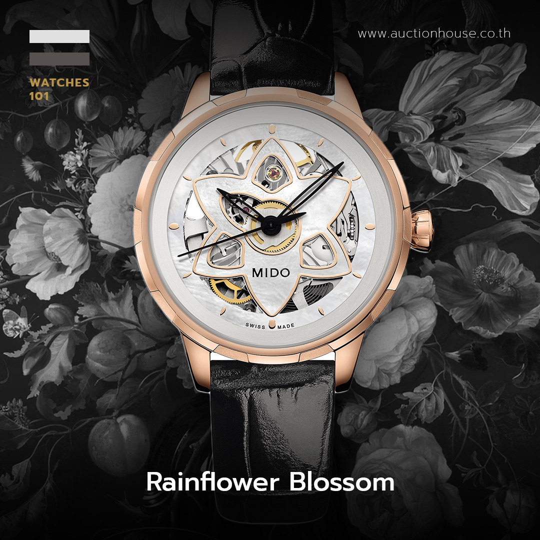 ต่อมาเป็น “เรนฟลาวเวอร์ บลอสซั่ม” (Rainflower Blossom) เรือนเวลารุ่นพิเศษสำหรับสุภาพสตรีจากคอลเลกชัน เรนฟลาวเวอร์ (Rainflower) สะท้อนความงดงามชวนให้หลงใหล ที่มาพร้อมการดีไซน์ลวดลายแบบใหม่บนหน้าปัดที่มีความโค้งมนอ่อนช้อย เหมือนกับความงดงามของดอกไม้ ที่ถูกสร้างสรรค์ขึ้นอย่างประณีตบรรจง ถ่ายทอดความหรูหราให้กับเหล่าสุภาพสตรีโดยเฉพาะ พร้อมกลไกคาลิเบอร์ 80 ที่สามารถสำรองพลังงานได้นาน 80 ชั่วโมง และบาลานซ์สปริงนิวาครอน (Nivachron)
