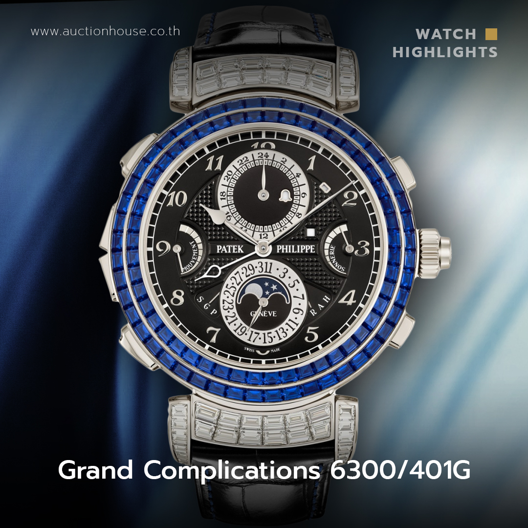 ต่อมาเป็นรุ่น Grand Complications 6300/401G ที่โดดเด่นด้วยหน้าปัดกลับด้านได้สองหน้า มาพร้อม 20 ฟังก์ชันที่มีความสลับซับซ้อนสูงมาก หน้าปัดยังคงเป็นสีดำเหมือนกับรุ่นก่อนหน้านี้ ล้อมรอบด้วยแซฟไฟร์สีน้ำเงินที่ถูกเจียระไนทรงเหลี่ยม 96 เม็ด (10.8 กะรัต) อยู่บริเวณขอบหน้าปัด และประดับเพชรทรงเหลี่ยมที่ถูกเจียระไนทั้งหมด 291 เม็ด (20.54 กะรัต) อยู่บริเวณตัวเรือนและด้านข้าง พร้อมแซฟไฟร์เจียระไนทรงเหลี่ยม 22 เม็ด (1.1 กะรัต) บริเวณเข็มกลัด ซึ่งรวมแซฟไฟร์เจียระไนทรงบาแก็ตต์ทั้งหมด 118 เม็ด (11.9 กะรัต) และเพชรเจียระไนทรงบาแก็ตต์ 291 เม็ด (20.54 กะรัต) มาพร้อมตัวเรือนไวท์โกลด์ ขนาด 49.4 มิลลิเมตร หนา 16.32 มิลลิเมตร จับคู่มากับสายสายหนังสีดำ ขับเคลื่อนด้วยกลไก Caliber 300 GS AL 36‑750 QIS FUS IRM ที่สามารถสำรองพลังงานได้นาน 72 ชั่วโมง ส่วนราคายังไม่ถูกเปิดเผย