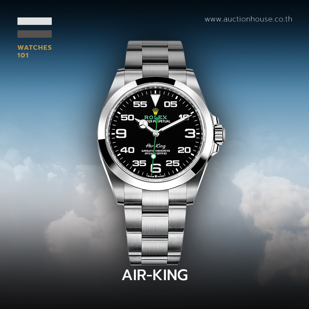 มาเริ่มกันที่ Air-King เป็นสัญลักษณ์ของผู้บุกเบิกการเดินทางทางอากาศในยุคทองของการบินช่วงทศวรรษที่ 1930 โดยนาฬิกาเจเนอเรชันใหม่นี้ โดดเด่นด้วยหน้าปัดสีดำอันเป็นเอกลักษณ์ที่สืบทอดจากรุ่นดั้งเดิม มาพร้อมกับตัวเลข 3, 6 และ 9 ขนาดใหญ่แสดงชั่วโมง รวมไปถึงเข็มนาฬิกาและเครื่องหมายชั่วโมงรูปสามเหลี่ยมที่ตำแหน่ง 12 นาฬิกา เคลือบด้วยสารเรืองแสงใหม่ที่ส่องสว่างกว่าเดิม เพื่อให้สามารถมองเห็นได้ในที่มืดได้ดียิ่งขึ้น มีการเพิ่มเลข “0” ก่อนเลข “5” บนสเกลนาทีเพื่อให้ตัวเลขดูสมดุลและง่ายต่อการอ่านเวลา พร้อมพิมพ์ชื่อ Air-King ด้านล่างหน้าปัดที่ใช้ตัวอักษรแบบเดียวกับนาฬิการุ่นพิเศษในทศวรรษที่ 1950