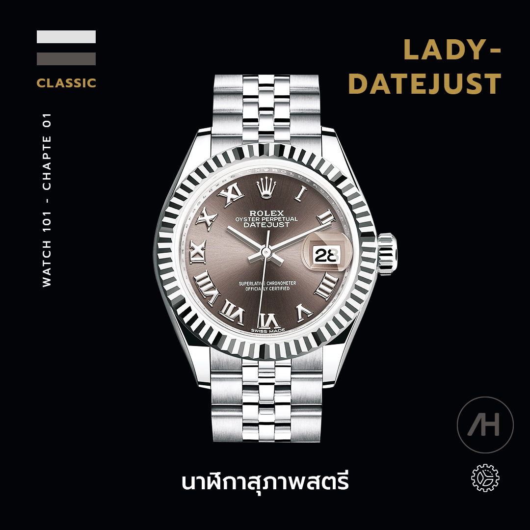 Datejust ได้รับกระแสตอบรับอย่างดีเยี่ยมจนทาง Rolex ต้องออก Lady-Datejust เพื่อคุณผู้หญิง โดยลดขนาดตัวเรือนลงเหลืออยู่ที่ 28 มม. แต่ก็ไม่ได้ลดประสิทธิภาพของนาฬิกาแต่อย่างใด คุณสามารถสวมใส่ไปสำรวจโลกใต้น้ำได้ หรือใส่ประดับออกงานก็ย่อมได้เพราะแม้จะใช้ชื่อ Lady แต่เรือนนาฬิกาชิ้นนี้ก็ยังเป็น Rolex ที่ถึกทนและพึ่งพาได้ จุดเด่นของรุ่นนี้ก็เหมือนรุ่นแรกคือมีหน้าต่างวันที่พร้อมเลนส์ Cyclops และขอบหน้าปัดแบบเซาะร่อง ปัจจุบัน Lady-Datejust มีตัวเลือกมากมายทั้งขอบหน้าปัดแบบเรียบ เซาะร่อง และประดับเพชร สายนาฬิกาแบบ Jubilee, Oyster และ President มีหน้าปัดหลากหลายสีแต่มีขนาดเดียวคือ 28 มม. ราคาเริ่มต้นอยู่ในช่วง 224,000 – 1,370,000 บาท