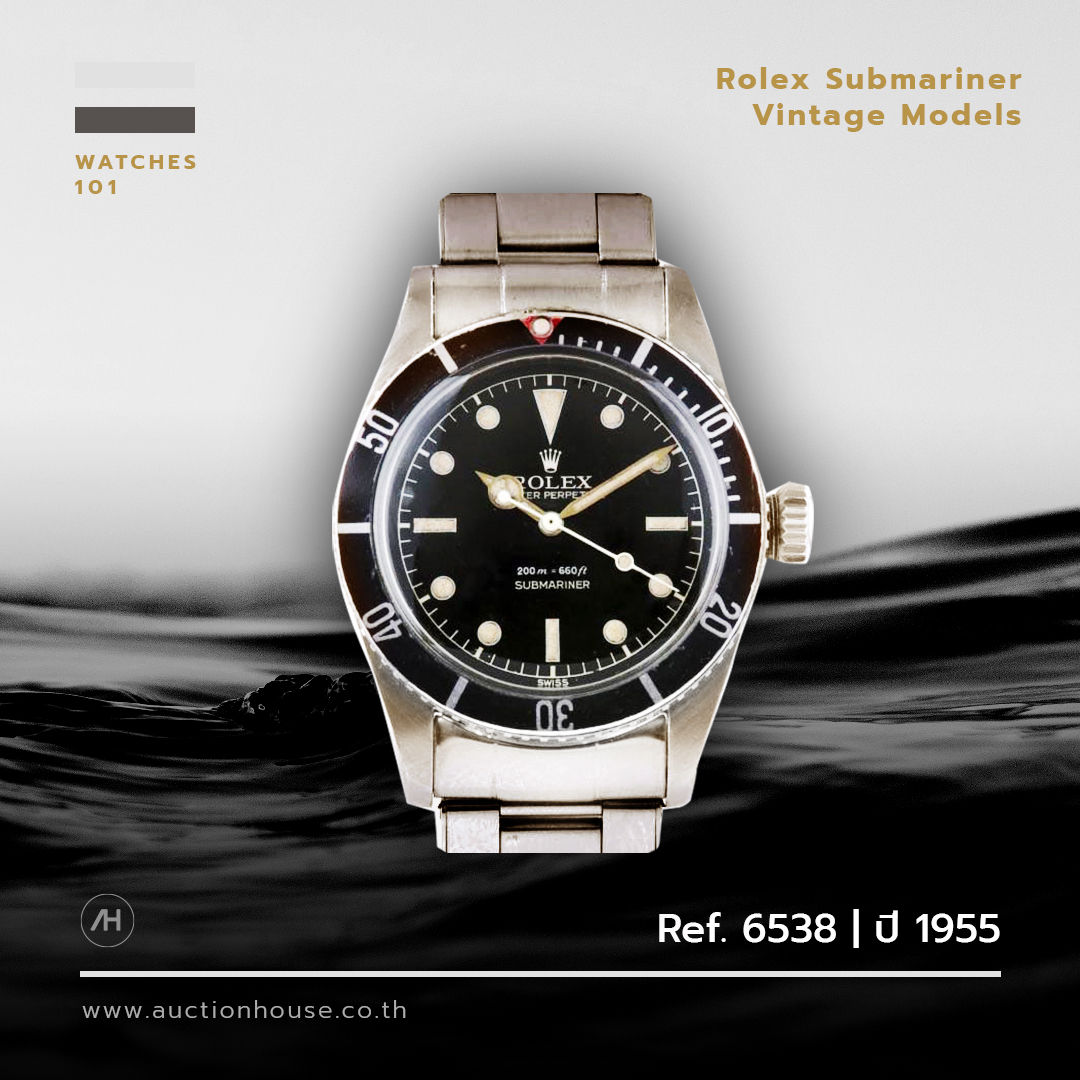 ผ่านมากว่า 65 ปี นับตั้งแต่ Rolex เริ่มต้นคอลเล็กชั่น Submariner ในปี ค.ศ. 1953 จากโมเดลตัวทดลองรุ่น 6200 หลังจากนั้นนาฬิกา Rolex Submariner ได้ถูกผลิตและวางขายในตลาดนาฬิกามาแล้วกว่า 25 โมเดล ซึ่งถ้าจะแบ่งให้เข้าใจตามแบบฉบับนักสะสมนาฬิกา สามารถแบ่งได้เป็น 2 กลุ่มใหญ่ๆ คือ 1) Vintage Rolex Submariner Models เป็นนาฬิกาคอลเล็กชั่น Submariner แบบวินเทจ ทุกรุ่นจะถูกผลิตและวางขายในช่วงปี 1953 กลายเป็นของหายากและราคาแพงมากในปัจจุบันนี้ รุ่นที่นักสะสมนาฬิกาต้องการไว้ในครอบครองก็หนีไม่พ้น Submariner Model 6200, 6204, 6538, 5513 และ 1680 2) Modern Rolex Submariner Models โมเดลเริ่มต้นสู่ยุค Modern Submariner ผลิตออกมาในปี 1988 และจุดเด่นของนาฬิกา Rolex Submariner ที่อยู่ในพาร์ท Modern จะมีเลข Reference อย่างน้อย 5 หลัก ขึ้นต้นด้วยเลข 1 และบางรุ่นจะมีตัวอักษรต่อท้าย ซึ่งต่างจาก Submariner ที่อยู่ในหมวด Vintage Submariner Models ที่มีเลข Reference เพียงแค่ 4 หลัก และจะมีเพียงแค่ Vintage Submariner รุ่นท้ายๆ ที่มีเลข 5 หลัก