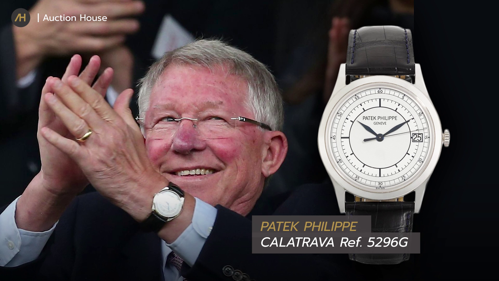Alex Ferguson อดีตผู้จัดการทีมฟุตบอลแมนเชสเตอร์ยูไนเต็ด สวมนาฬิกา Patek Philippe Calatrava Ref. 5296G ที่เปิดตัวครั้งแรกในปี 2007 ตัวเรือนทำจากทองคำขาว 18 กะรัต ขนาด 38 มิลลิเมตร มาพร้อมหน้าปัดสีเงินและสายหนังจระเข้ ให้ลุควินเทจและคลาสสิก ทำงานด้วยกลไกไขลานอัตโนมัติ Calibre 324 SC กระจกด้านหลังแซฟไฟร์ ราคา 27,000 ดอลลาร์สหรัฐ หรือประมาณ 912,181 บาท