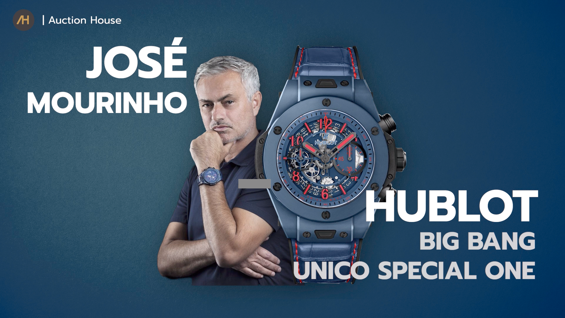 นาฬิกา Hublot Big Bang Unico Special One มีดีไซน์ประดับด้วยสีน้ำเงิน เพราะเป็นสีโปรดของ Jose Mourinho ดังนั้นสีน้ำเงินจึงถูกทาลงบนกรอบและตัวเรือนเซรามิกขัดเงาขนาด 45 มิลลิเมตร ส่วนสีแดงก็เป็นเหมือนคาแรกเตอร์ของเขา หน้าปัดนาฬิกาจึงถูกตกแต่งด้วยสีแดงและสีดำเป็นแบบสเกเลตันเพื่อเผยให้เห็นกลไกโครโนกราฟแบบฟลายแบ็ก สำรองพลังงานได้ 72 ชั่วโมง ส่วนสายนาฬิกาเป็นแบบสายหนังจระเข้เฉดสีฟ้าตกแต่งด้วยการเย็บตะเข็บสีแดงเข้ากับตัวเรือนได้เป็นอย่างดี ผลิตในจำนวนจำกัด 200 เรือน ราคาประมาณ 717,670 บาท