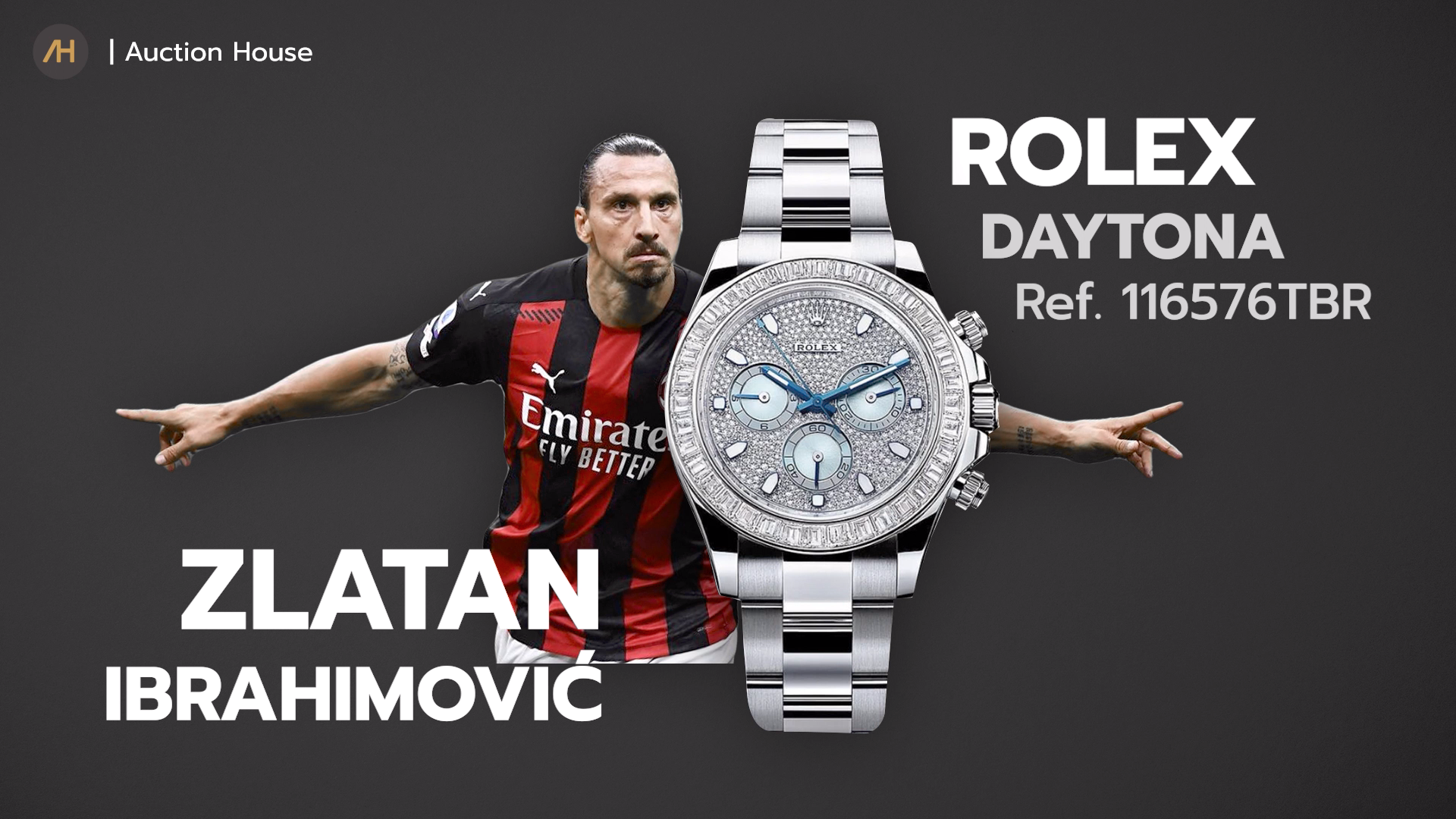 Zlatan Ibrahimović น่าจะเป็นคลับของ Rolex เพราะนาฬิกาที่เขาใส่มีแต่แบรนด์ Rolex ทั้งนั้นเลย ไม่ว่าจะเป็น Rolex Daytona Ref. 116500, Rolex GMT Master II Ref. 116718 และที่จะพูดถึงในครั้งนี้คือ Rolex Cosmograph Daytona reference 116576TBR ขนาด 40 มิลลิเมตร ตัวเรือนใช้วัสดุแพลทินัมมีความแข็งแรงทนทานและมีความแวววาวสวยงาม กรอบหน้าปัดประดับด้วยเพชรที่เจียระไนทรงบาแก็ตต์และพื้นหน้าปัดประดับด้วยเพชรแบบ pavè คือมีการจัดวางเรียงกันแน่นเพื่อให้องศาของแสงที่จะตกกระทบเพชรได้อย่างลงตัวและสวยงาม ราคา 174,000 ดอลลาร์สหรัฐ หรือ 5,912,520 บาท