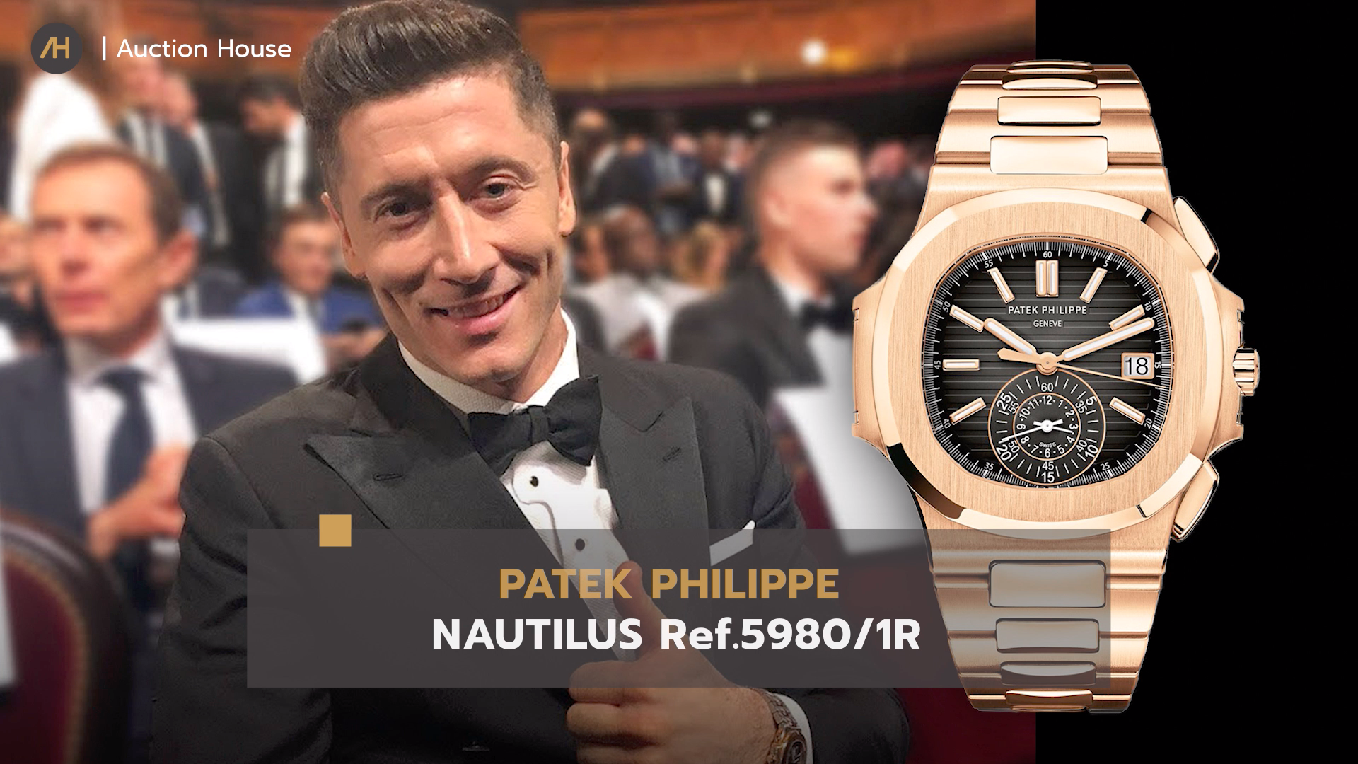 Robert Lewandowski ใส่นาฬิกา Patek Philippe Nautilus Ref. 5980/1R ซึ่งนาฬิการุ่นนี้เป็นนาฬิกา Automatic โครโนกราฟรุ่นแรกของคอลเลคชัน Nautilus ตัวเรือนขนาด 40.5 มิลลิเมตร ตัวเรือนจะเป็นวัสดุ Rose gold หน้าปัดดำ จุดสังเกตของ Ref. 5980 อยู่ที่ฟังก์ชันโครโนกราฟที่มี Monocounter อยู่ตรงกลางหน้าปัด และมีฟังก์ชันวันที่ อยู่ที่ตำแหน่ง 3 นาฬิกา หลักชั่วโมงผลิตจากทองและมีการเคลือบสารเรืองแสง ขับเคลื่อนด้วย Caliber CH 28‑520 C. ราคามือหนึ่ง 2,979,100 บาท ส่วนราคามือสองอยู่ที่ประมาณ 8,600,00 บาท