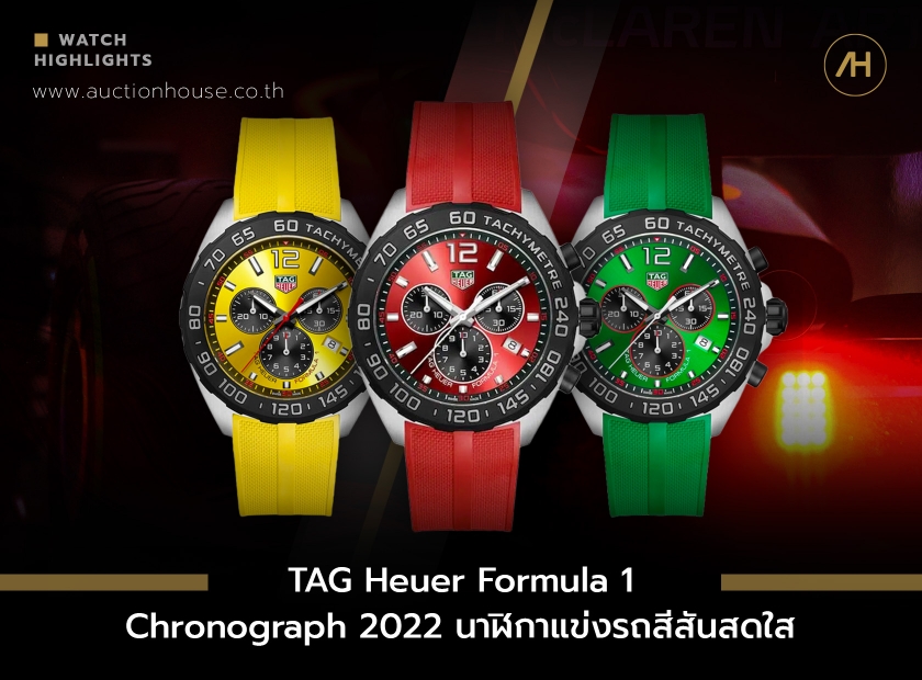 โดยในปี 2022 นี้ ทางแบรนด์ TAG Heuer ได้อัปเดตนาฬิกาในคอลเลกชัน Formula 1 ที่มาในชื่อรุ่น TAG Heuer Formula 1 Chronograph นาฬิการุ่นใหม่อันโดดเด่นด้วยหน้าปัดสีสันสดใสในสไตล์สุดเท่ ซึ่งมีทั้งหมด 3 สี คือ สีเหลือง สีแดง และสีเขียว ปัดแต่งลวดลาย Sunray ที่เป็นรัศมีเล่นแสงจากจุดกึ่งกลางของหน้าปัดแผ่กระจายออกไปสู่ขอบด้านข้าง ทำให้นาฬิกาดูมีมิติอย่างสวยงาม ตัดกับหน้าปัดย่อยสีดำที่สามารถจับเวลาได้ละเอียดถึง 1/10 วินาที และต่อเนื่องสูงสุด 30 นาที ประดับด้วยหลักชั่วโมงเป็นแบบทรงแท่งสี่เหลี่ยมและเลขอารบิกตรงบริเวณ 12 นาฬิกา พร้อมทั้งเคลือบสารเรืองแสง Super-LumiNova® ไว้ เพื่อให้สามารถมองเห็นได้อย่างชัดเจนในที่มืด มาพร้อมหน้าต่างวันที่อยู่บริเวณ 4 นาฬิกา ที่มีการจัดเรียงไว้อย่างพอดี ทั้งหมดนี้อยู่ภายใต้กระจกแซฟไฟร์ที่มีความใสและกันรอยขีดข่วนได้ดี ขอบตัวเรือนจะประดับสเกลมาตรวัดความเร็ว หรือที่เรียกว่า Tachymeter (ทาคีมิเตอร์) อันเป็นอัตลักษณ์ของนาฬิกาสปอร์ต ด้านข้างตัวเรือนมีปุ่มกดจับเวลาและเม็ดมะยมที่เคลือบสีดำไว้อย่างสวยงาม มาพร้อมตัวเรือนสเตนเลสสตีล ขนาด 43 มิลลิเมตร จับคู่กับสายยางสีเดียวกับหน้าปัด ทำให้ได้ลุคที่สดใสคุมโทน ส่วนด้านหลังตัวเรือนเป็นฝาปิดทึบสลักโลโก้ TAG Heuer และลายตารางสีเหลี่ยม ขับเคลื่อนการทำงานด้วยกลไก Quratz Chronograph โดยนาฬิกาเรือนนี้มีราคาอยู่ที่ 1,850 ดอลลาร์สหรัฐ หรือ ประมาณ 70,000 บาท